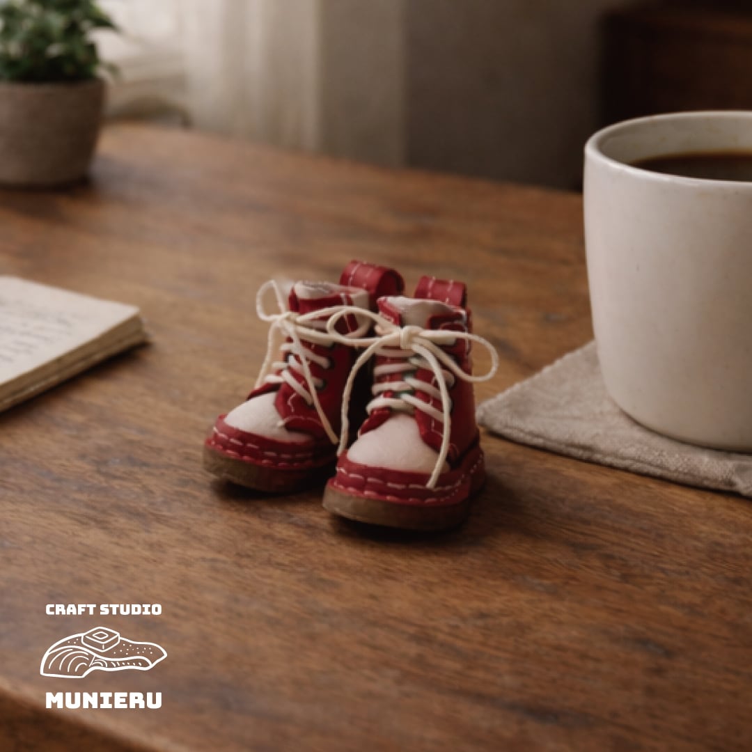 ミニチュア編み上げブーツ【red×natural】