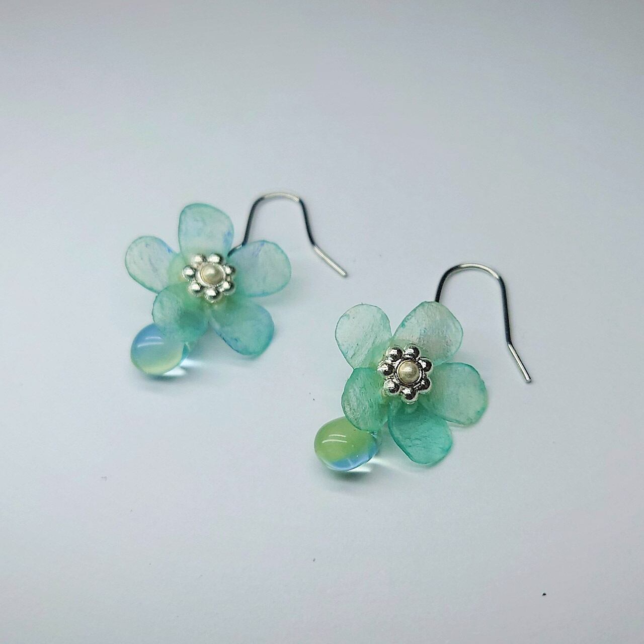 生革という透け感のある革を、ネモフィラをイメージしたグラデーションをかけて染め上げました。